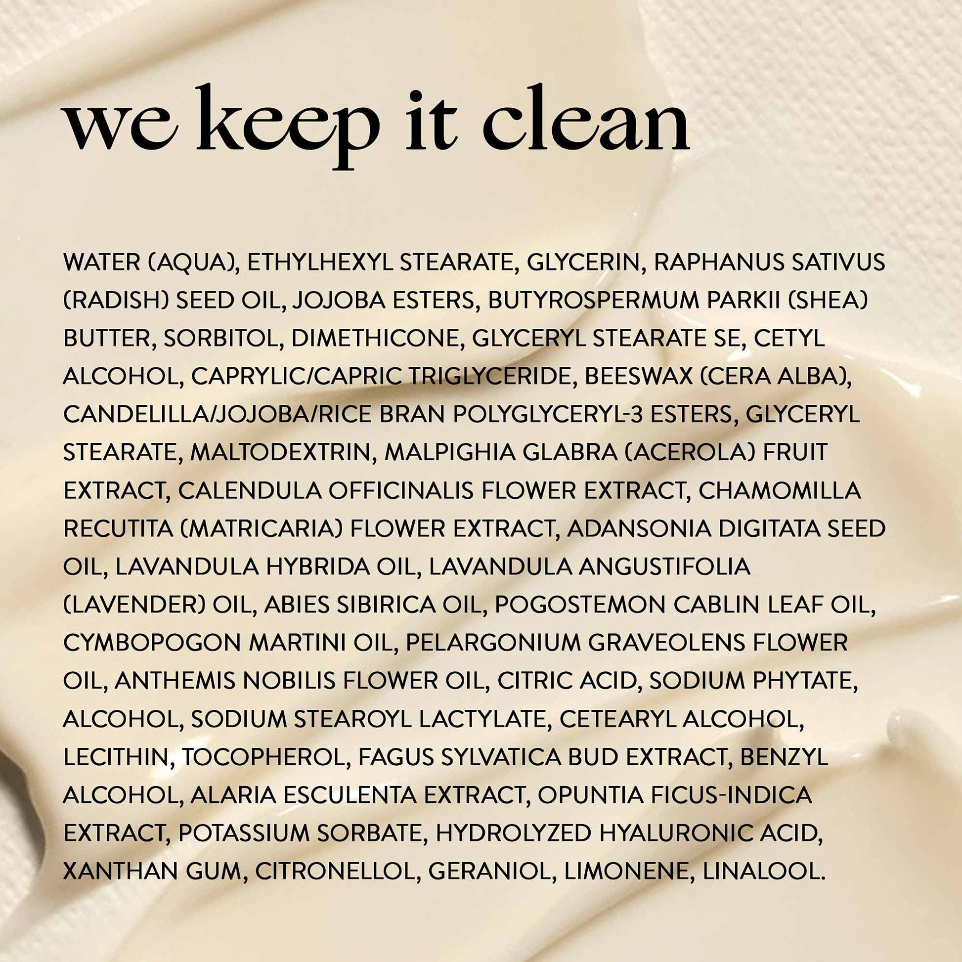 - MADE WITHOUT: Parabens, Phthalates, PEGs, Dyes, Mineral Oil, Synthetic Fragrances